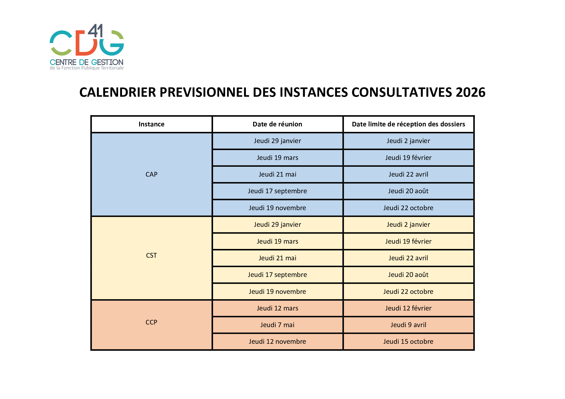 Calendrier des instances consultatives